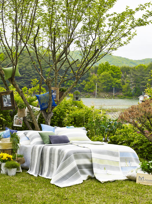 Super COOL 100% Korean Art Silk Blanket set_Green&Grey